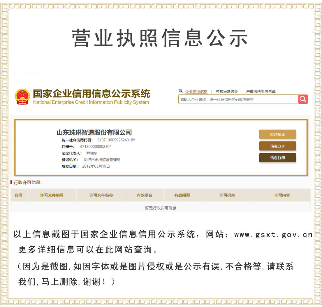 營業執照公示;